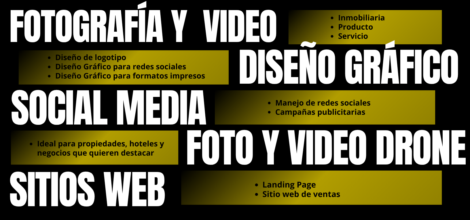 Contamos con un equipo altamente cualificado que ofrece una amplia gama de servicios de marketing digital, desde fotografía y videos profesionales hasta diseño gráfico innovador, desarrollo web a medida, gestión de redes sociales y optimización SEO para Google.